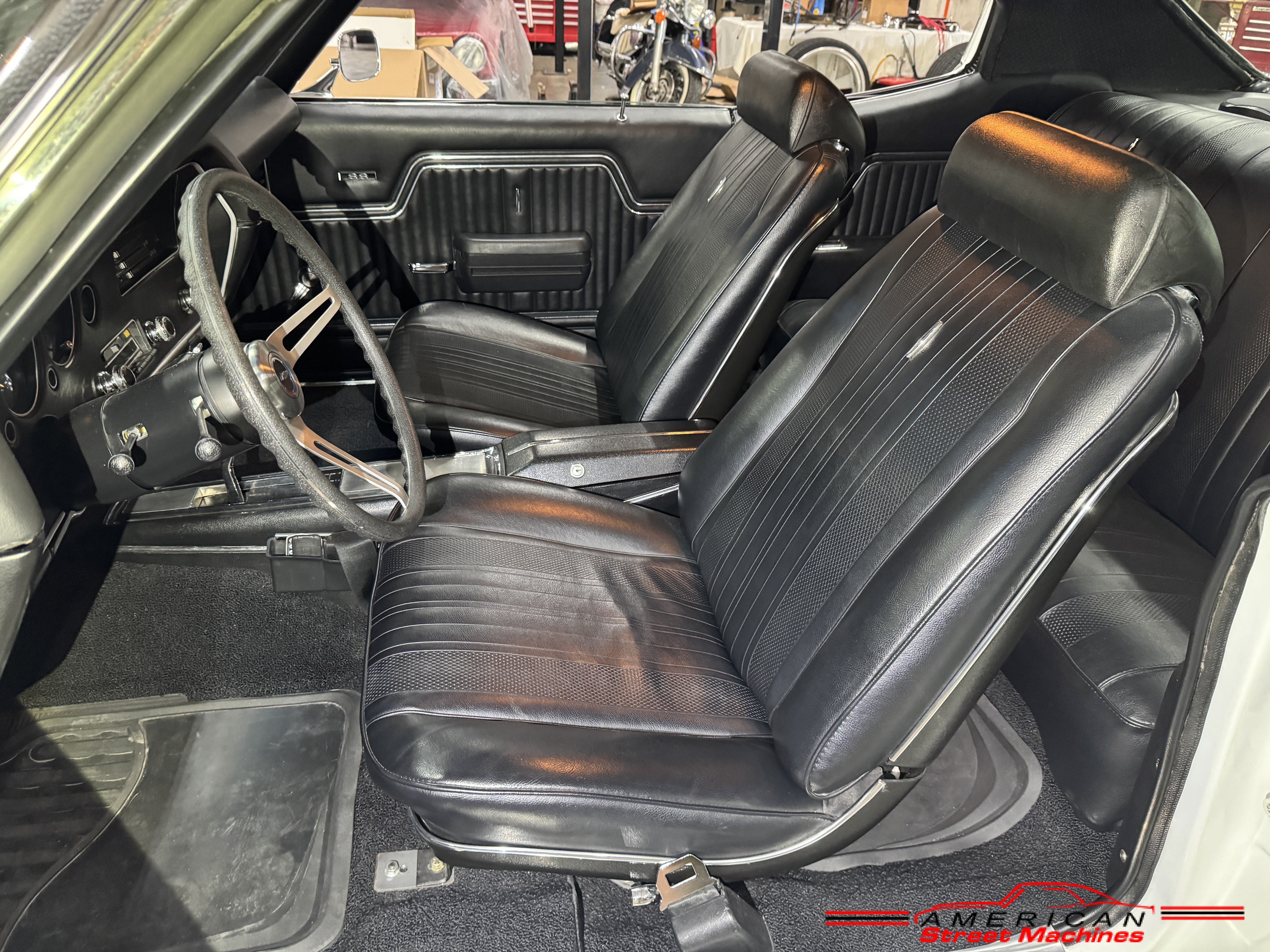 1970 Chevelle SS. American Street Machines Inc is proud to offer this stunning 1970 Chevelle SS for sale. The restoration done on this car is impeccable to detail. One of the best looking and driving cars at our shop! 454 big block engine (era correct), cowl induction with flapper, Muncie M21 4 speed, Hurst completion plus shifter, 12 bolt 355 posi, Holley 780 Double Pumper carb,17” rims with nitto tires Stunning color combination with Classic white with black vinyl top and black interior. This is a Nicely optioned Chevelle with tilt steering wheel, bucket seats, tach and gauges, power front disc brakes, power steering, F41 suspension, edelbrock aluminum intake, ceramic coated headers, 2 1/2” exhaust with flowmaster mufflers. Laser straight body with great alignment. Excellent paint and finished in PPG base coat clear coat sanded and buffed to a mirror finish with all new Black Strato bucket seat interior.