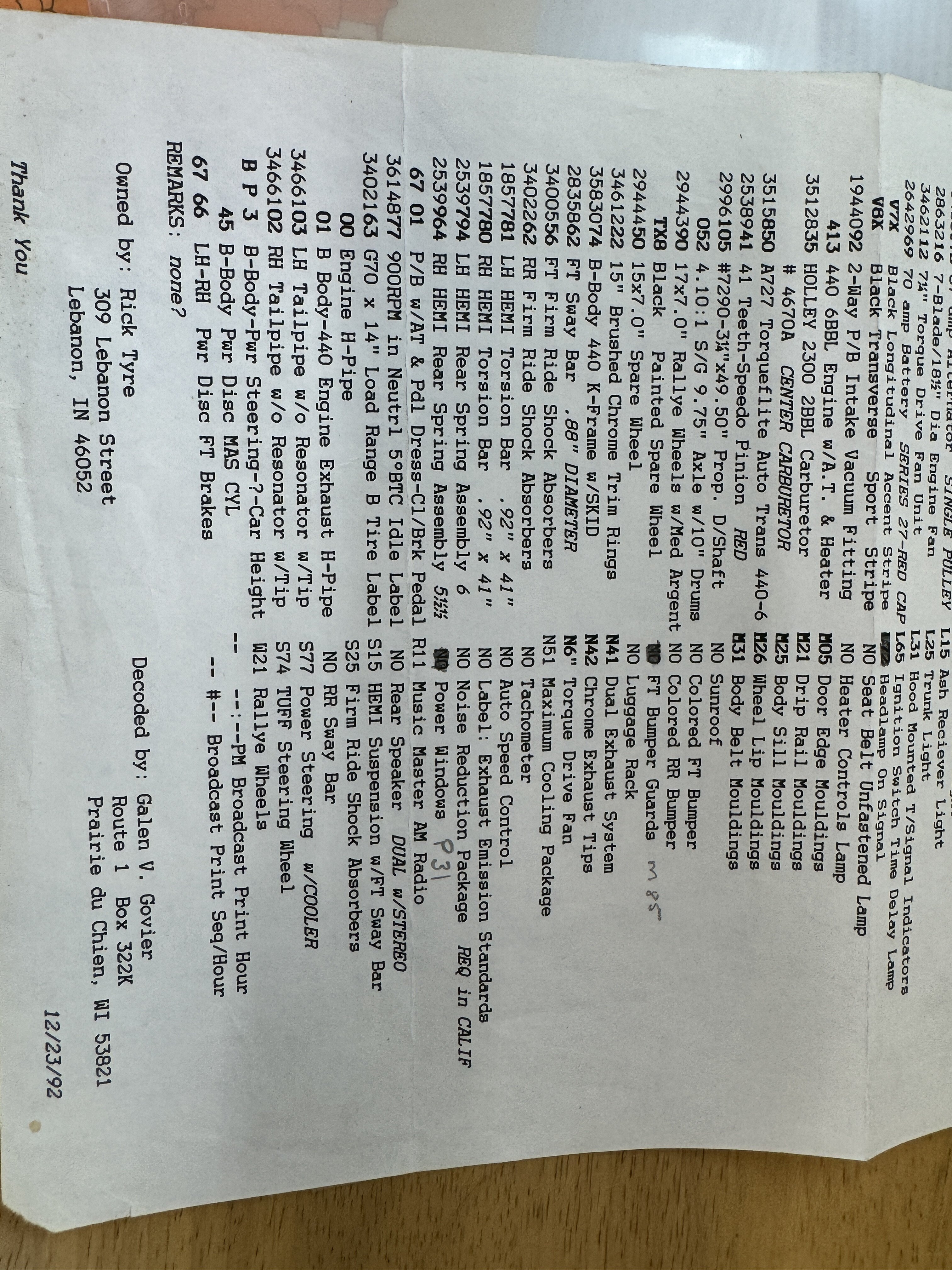 If you take a moment to read through the Galen inspection you will see this is a 2 fender tag car with all the options. 2nd fender tag was misplaced when restored and will be ordered and sold with car.
