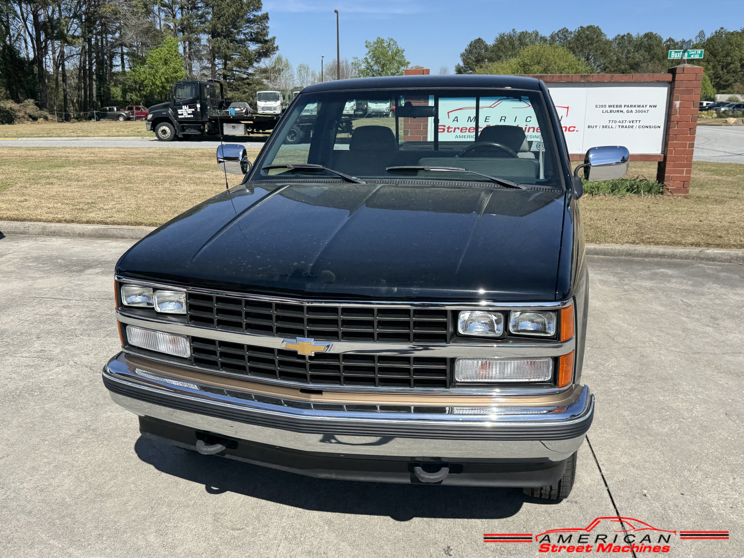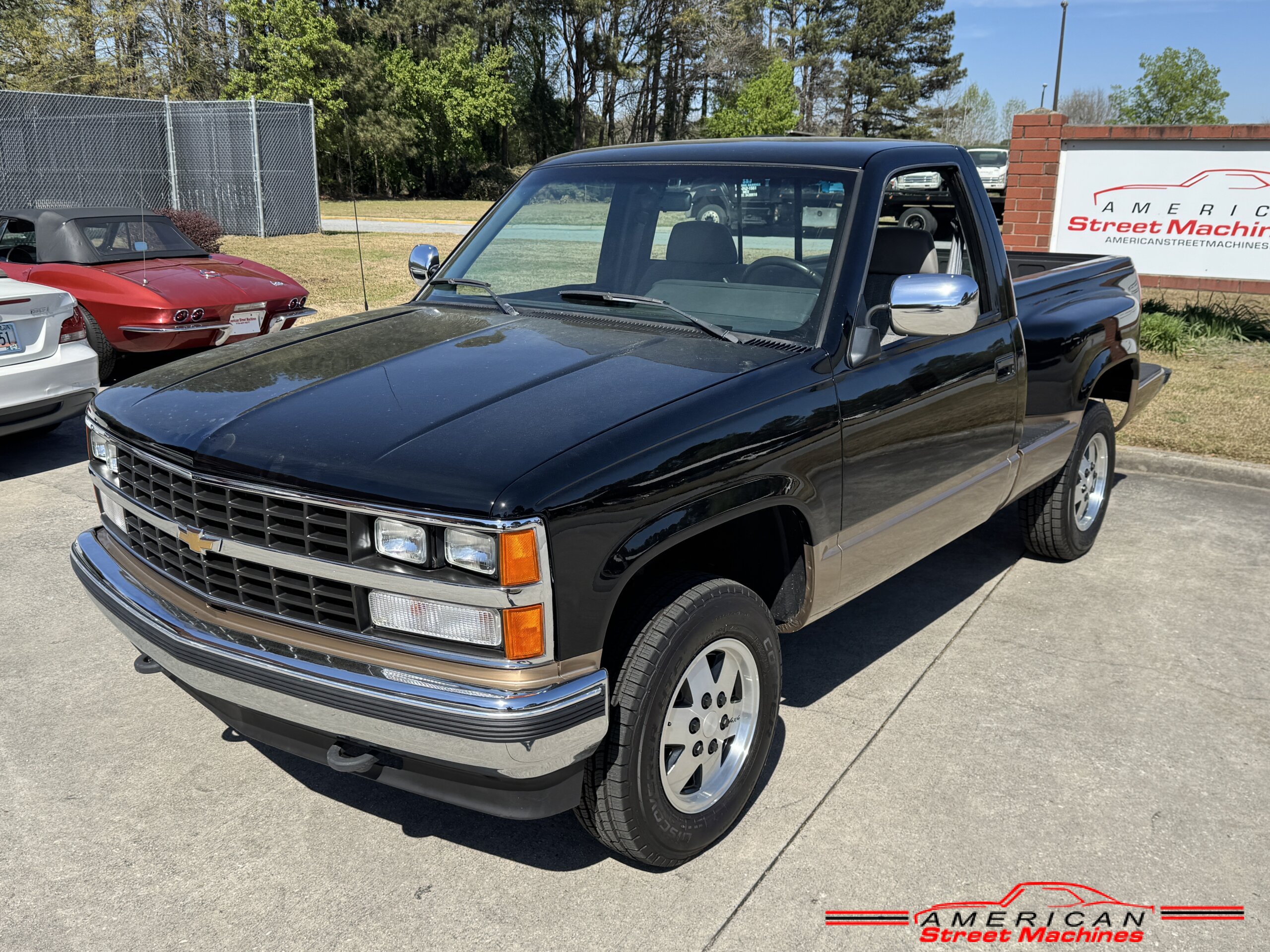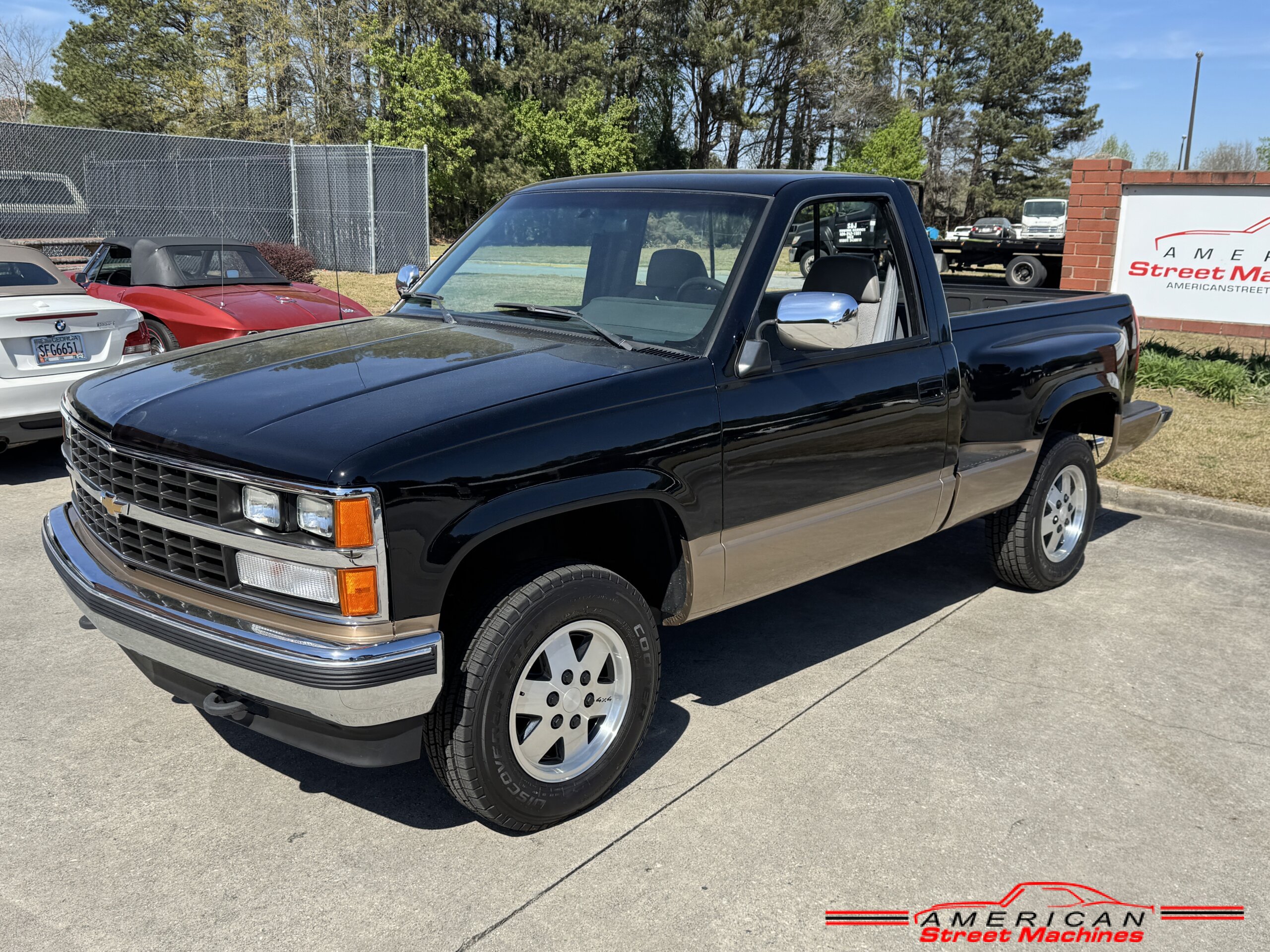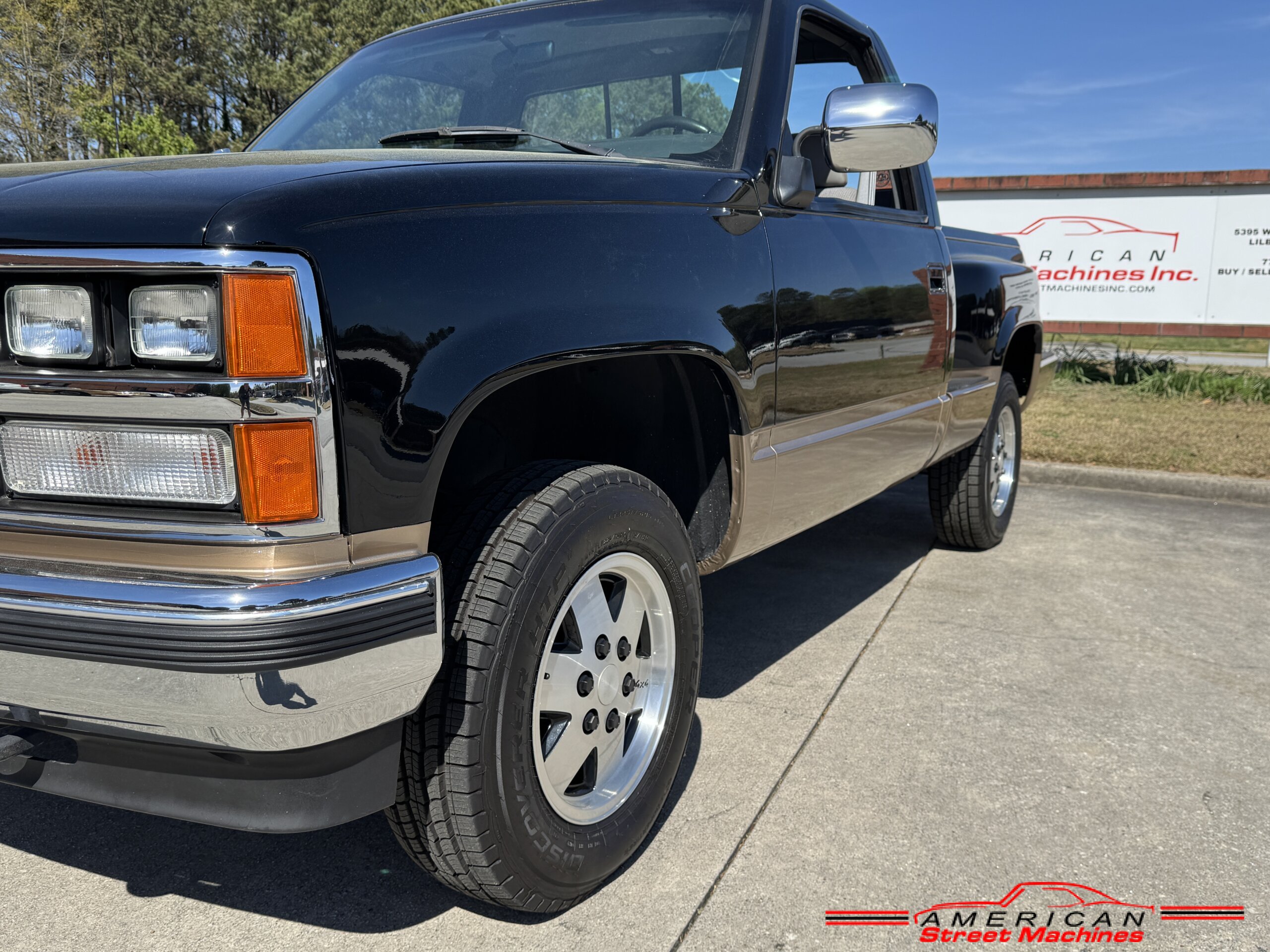 American Street Machines is proud to offer this very nice 1988 Chevy Silverado 4X4 for sale. This truck was sold new right here in GA and was very well taken car of before it was restored. Slick Black and Gold paint with original Grey clothe interior that is in great condition. 5.7 350 V8 engine with over drive automatic transmission and 4 wheel drive floor shift. Everything that needed to be restored on this truck has been done. Loaded up with options power steering, power brakes, air conditioning, power windows, power locks, sliding rear window, tilt wheel and 4 wheel drive. New factory correct wheels with new tires. The bed has new black rino lining and you can tell it was never dinged up. All chrome bumpers and mirrors are new. You would be hard pressed to find another 1988 Chevy Silverado 4×4 this nice with 124K original miles.