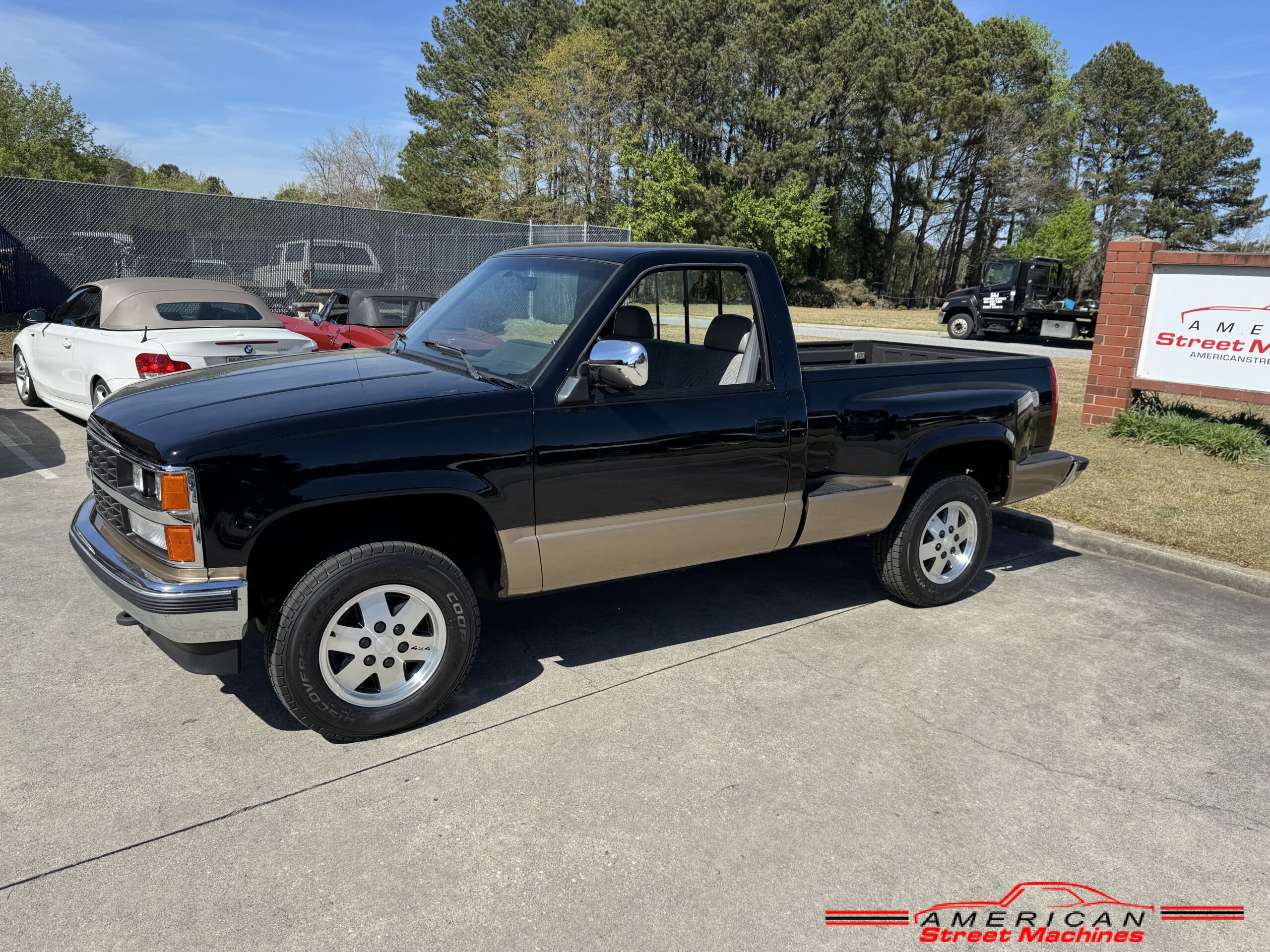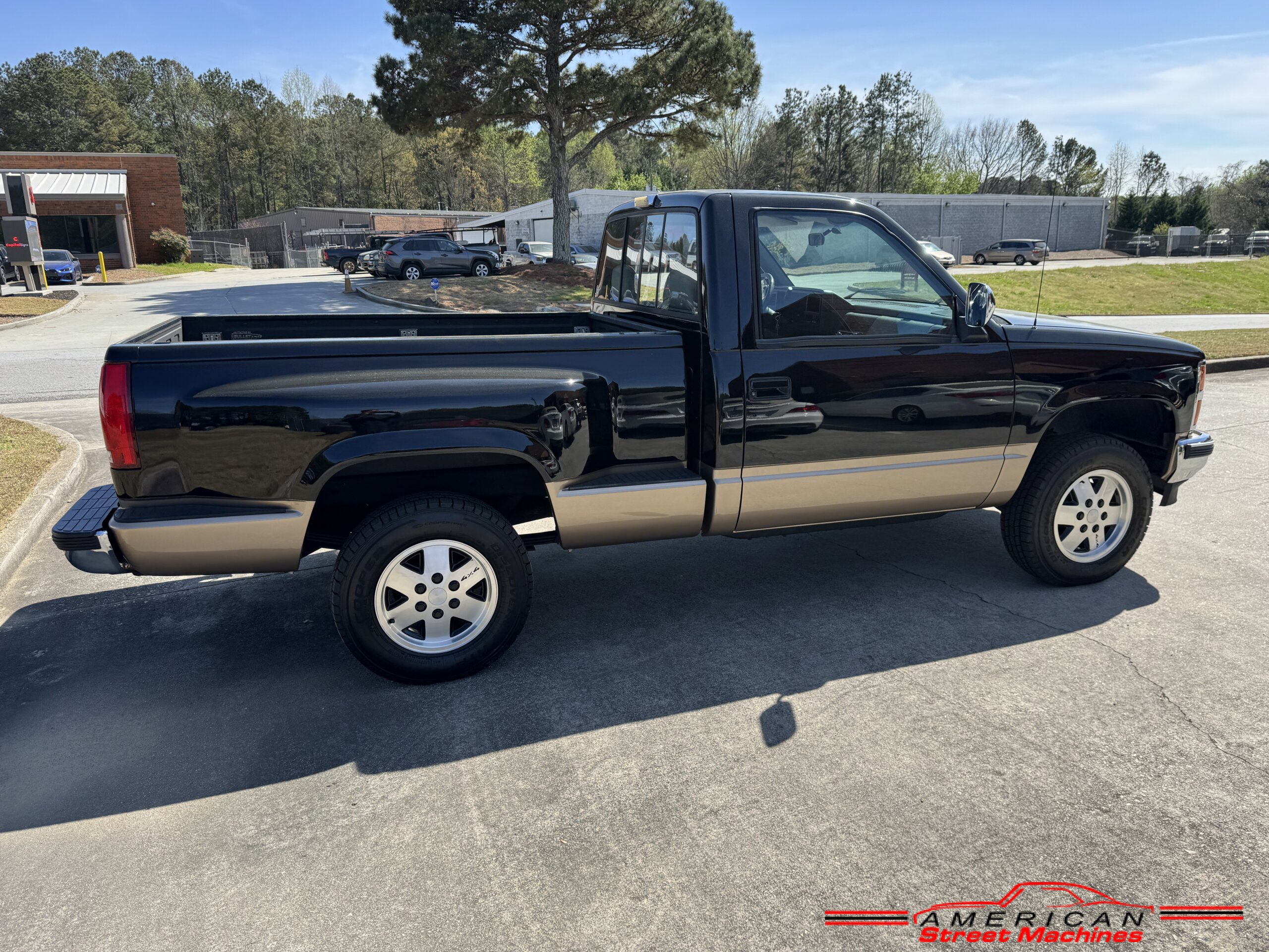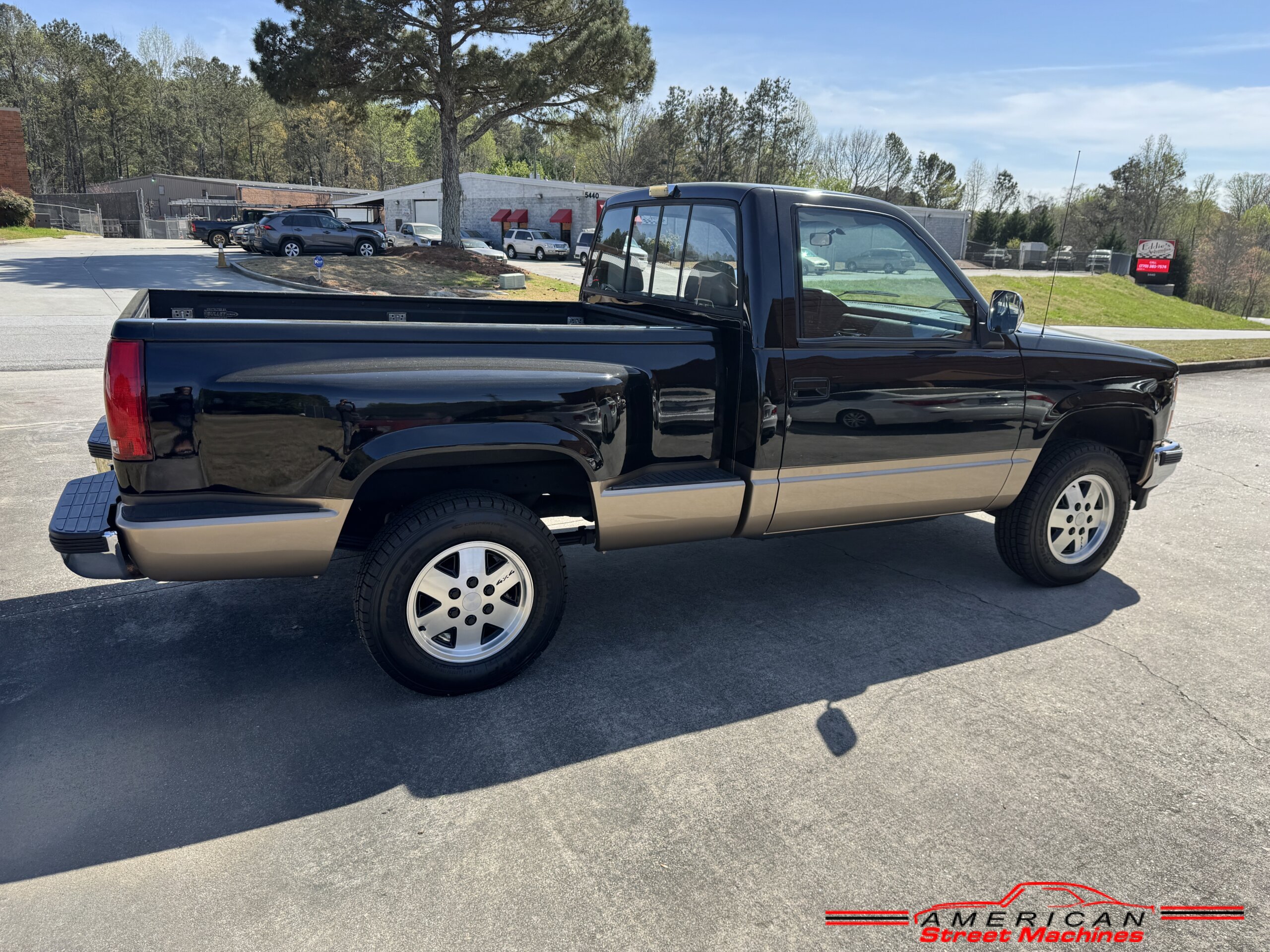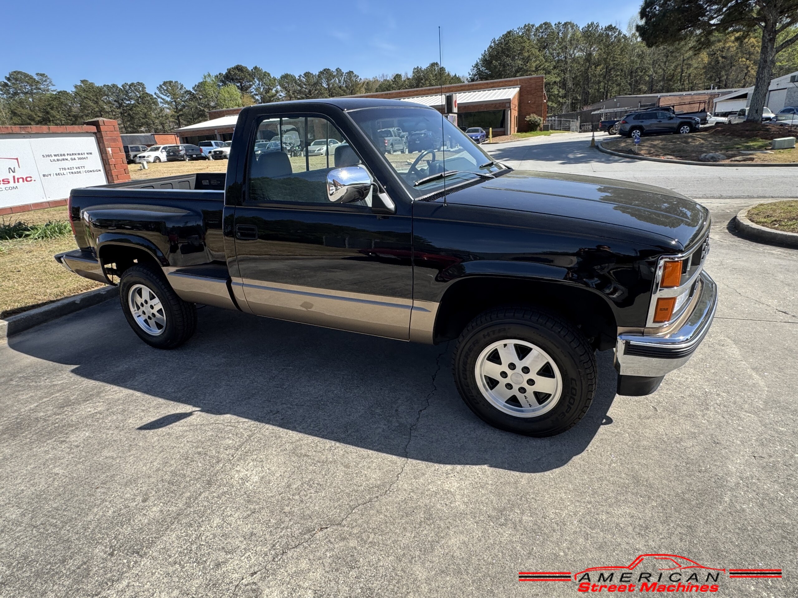 American Street Machines is proud to offer this very nice 1988 Chevy Silverado 4X4 for sale. This truck was sold new right here in GA and was very well taken car of before it was restored. Slick Black and Gold paint with original Grey clothe interior that is in great condition. 5.7 350 V8 engine with over drive automatic transmission and 4 wheel drive floor shift. Everything that needed to be restored on this truck has been done. Loaded up with options power steering, power brakes, air conditioning, power windows, power locks, sliding rear window, tilt wheel and 4 wheel drive. New factory correct wheels with new tires. The bed has new black rino lining and you can tell it was never dinged up. All chrome bumpers and mirrors are new. You would be hard pressed to find another 1988 Chevy Silverado 4×4 this nice with 124K original miles.