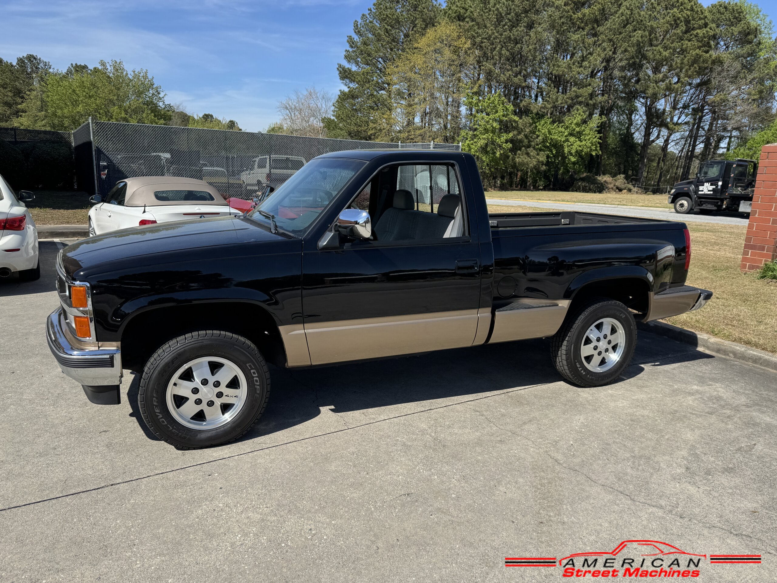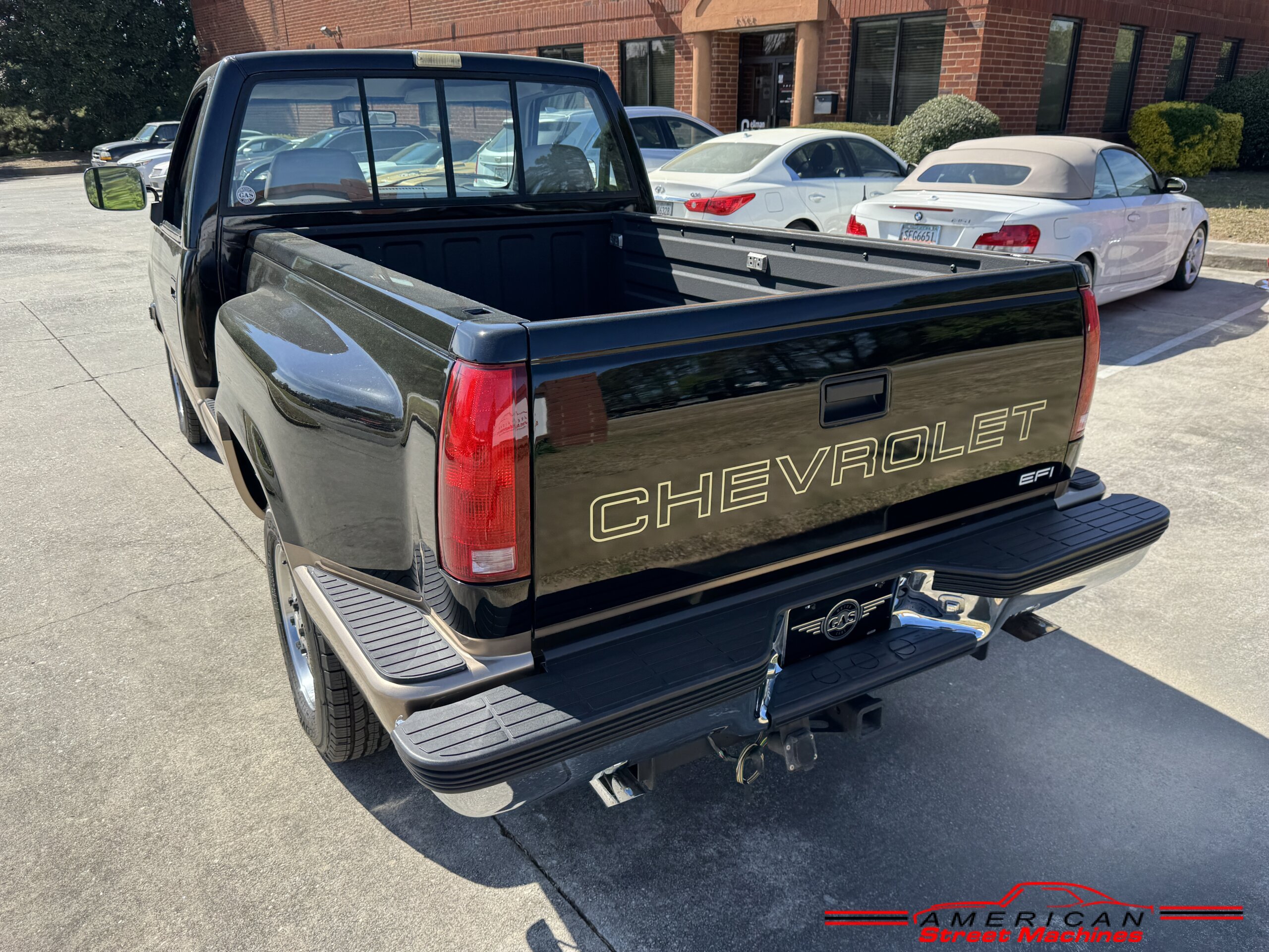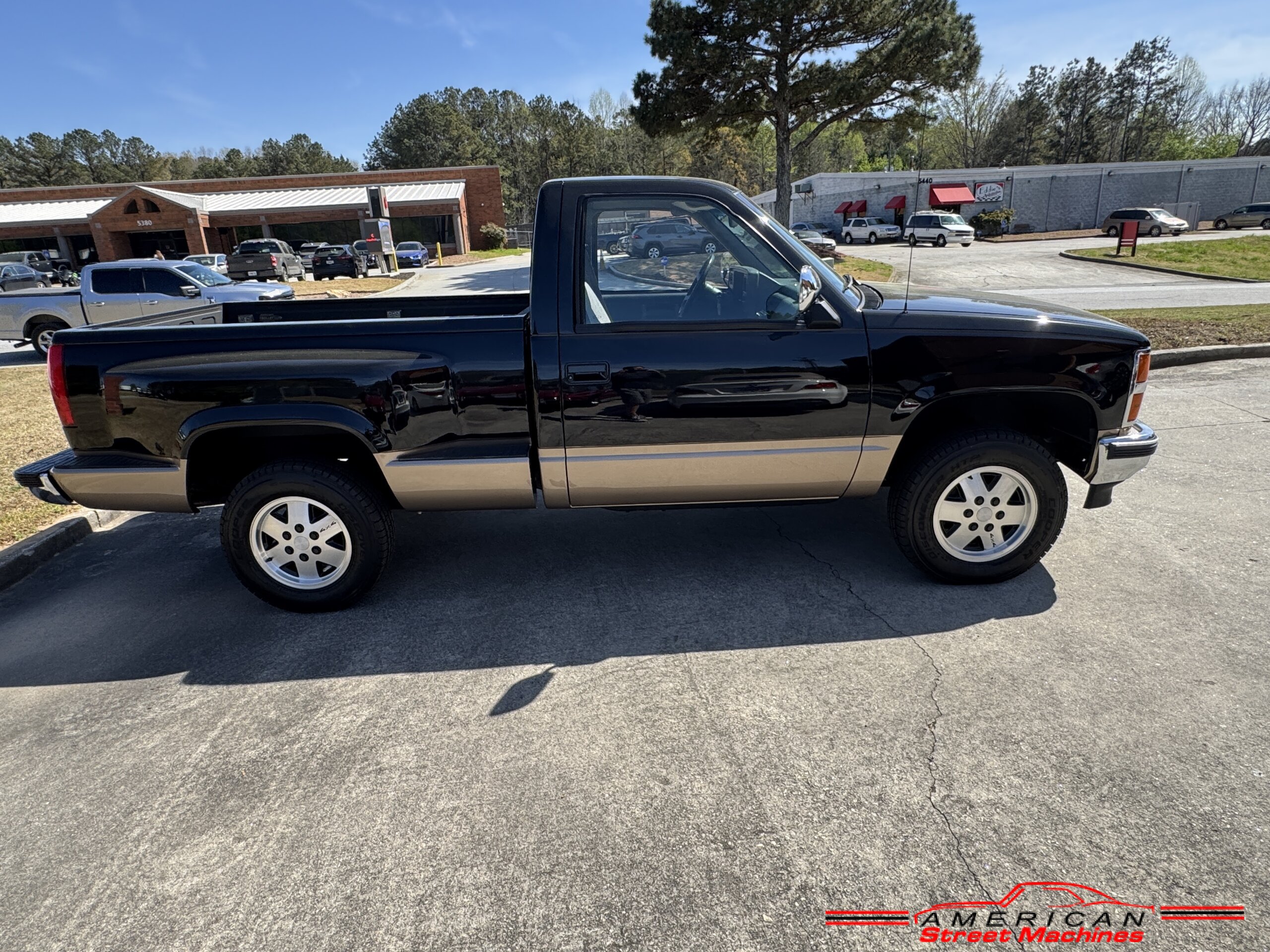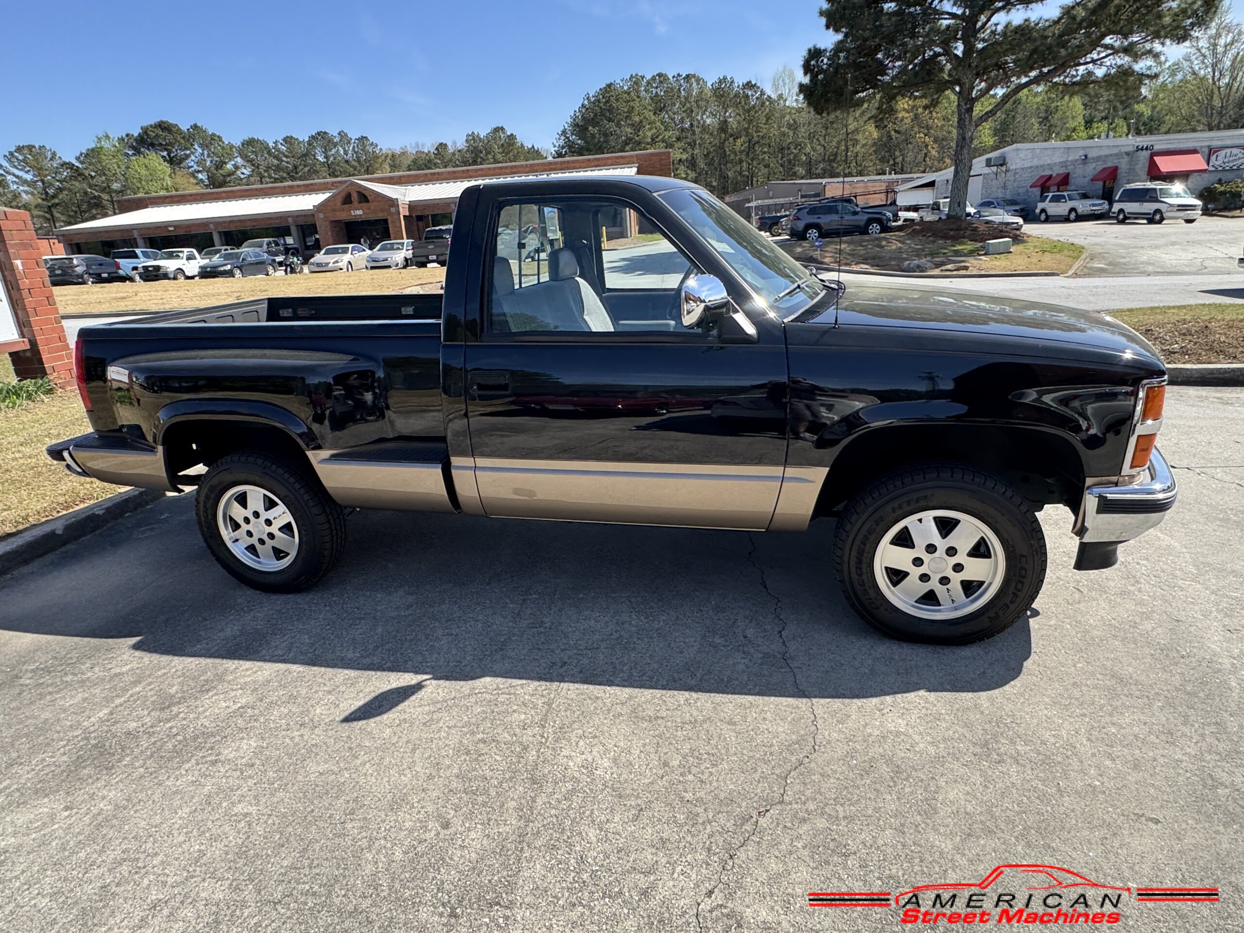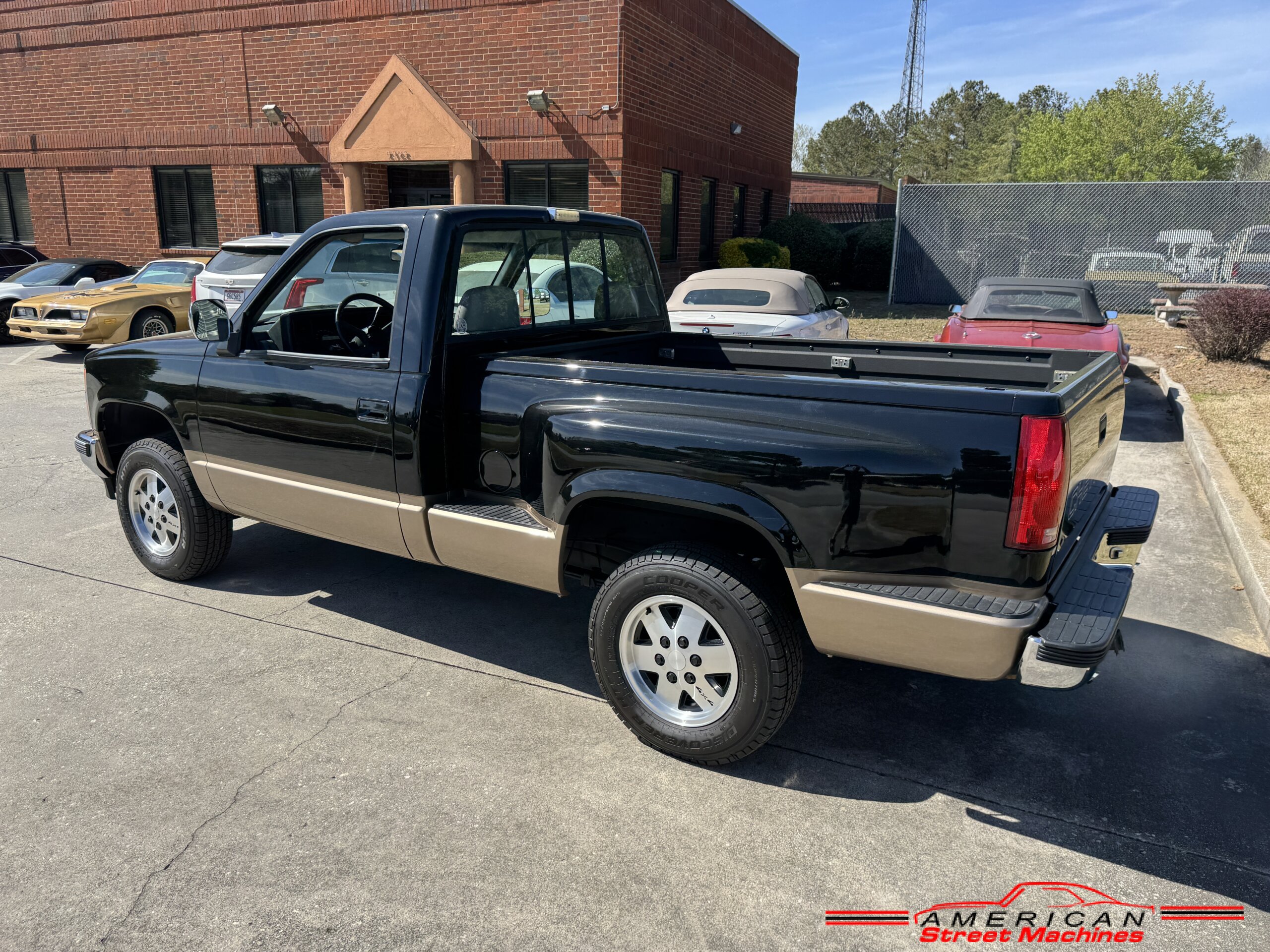 American Street Machines is proud to offer this very nice 1988 Chevy Silverado 4X4 for sale. This truck was sold new right here in GA and was very well taken car of before it was restored. Slick Black and Gold paint with original Grey clothe interior that is in great condition. 5.7 350 V8 engine with over drive automatic transmission and 4 wheel drive floor shift. Everything that needed to be restored on this truck has been done. Loaded up with options power steering, power brakes, air conditioning, power windows, power locks, sliding rear window, tilt wheel and 4 wheel drive. New factory correct wheels with new tires. The bed has new black rino lining and you can tell it was never dinged up. All chrome bumpers and mirrors are new. You would be hard pressed to find another 1988 Chevy Silverado 4×4 this nice with 124K original miles.
