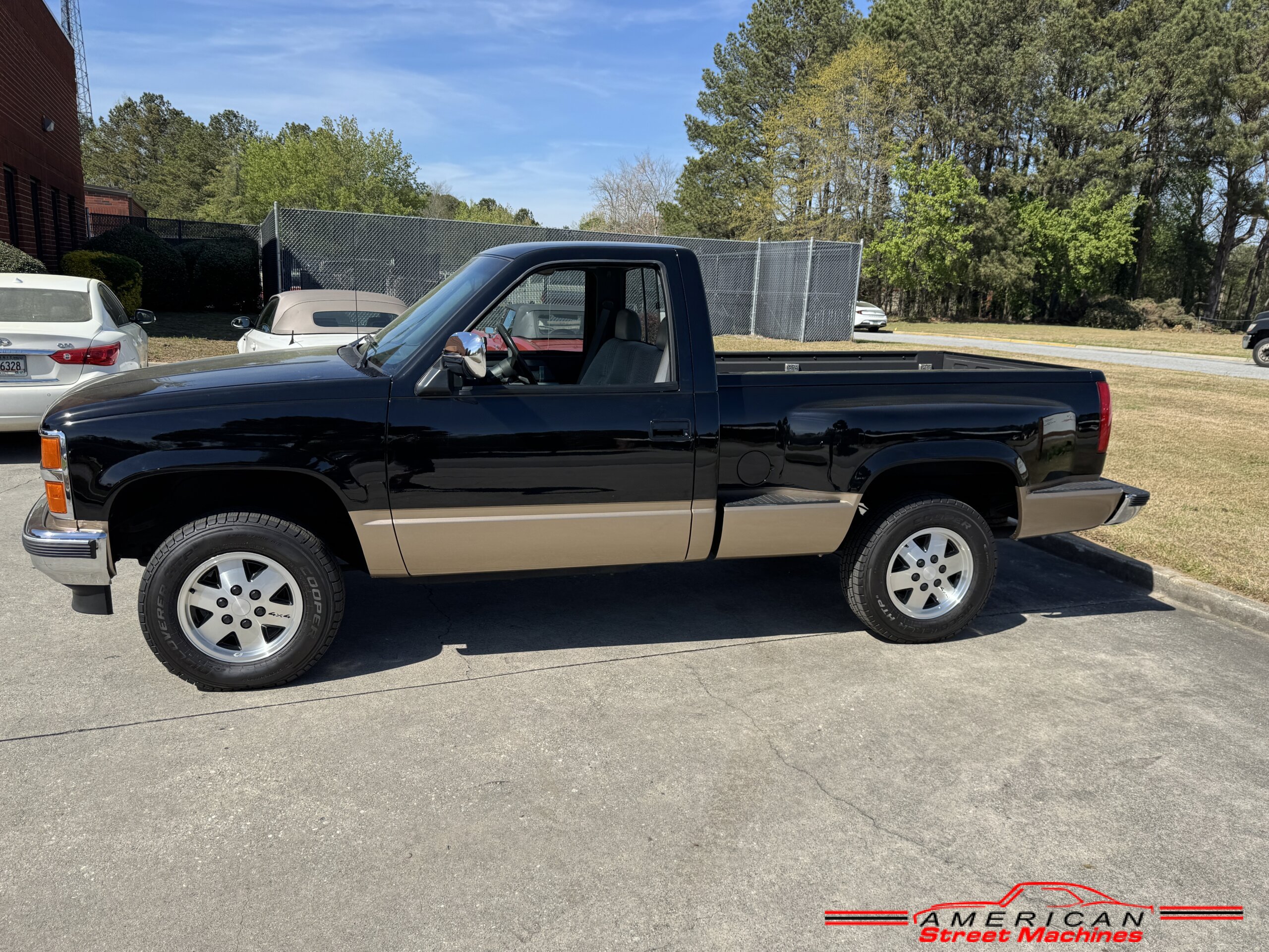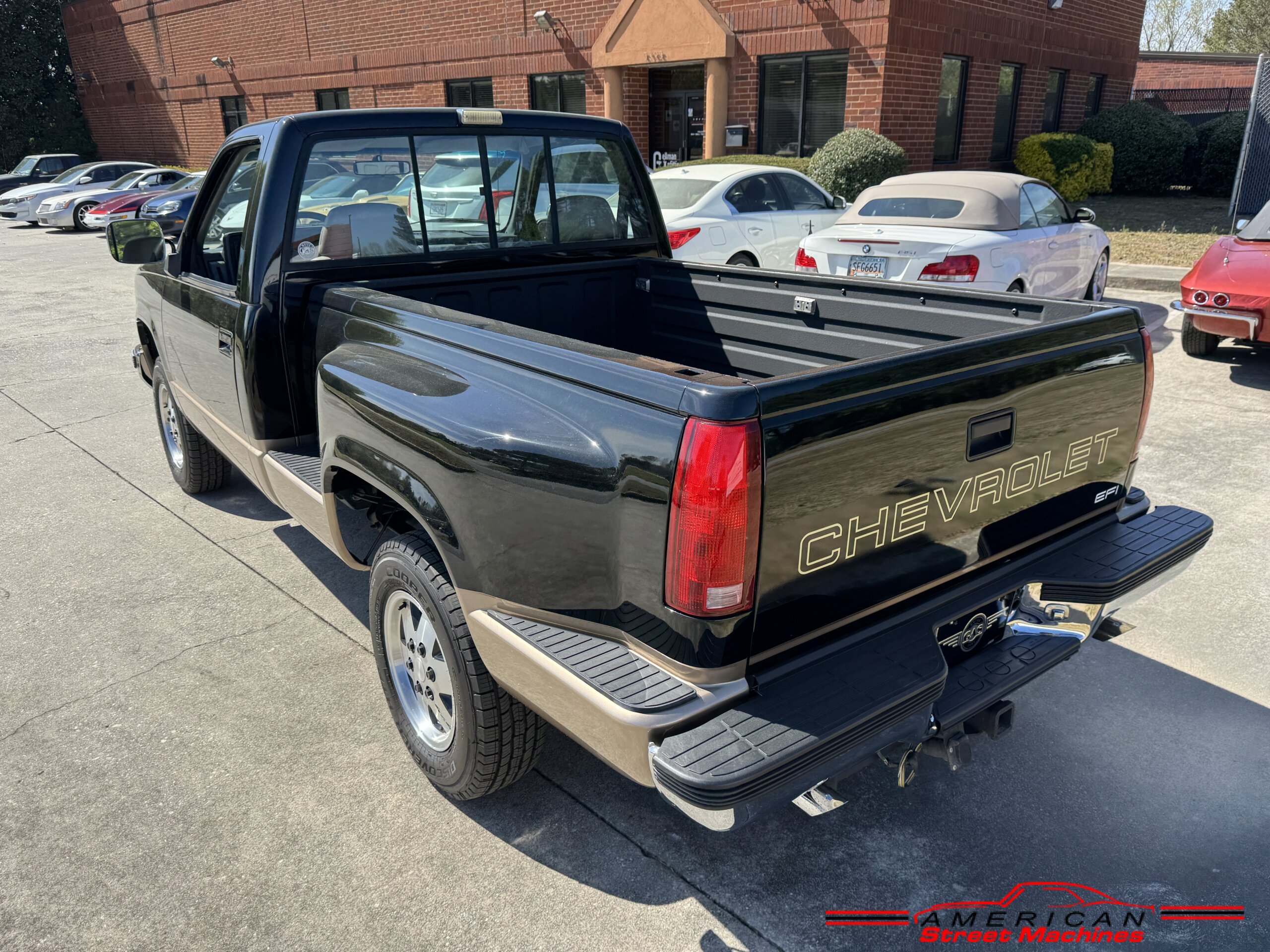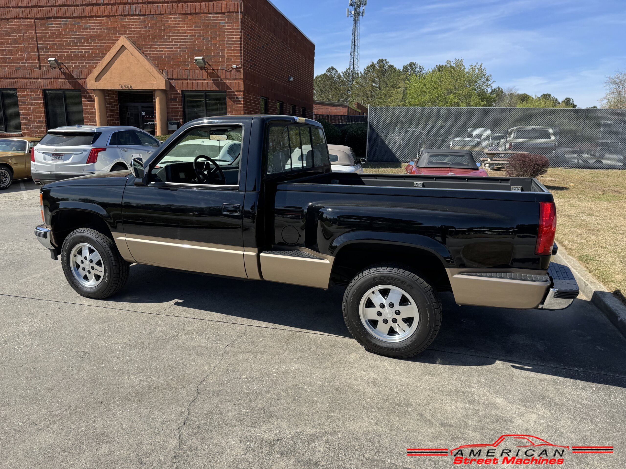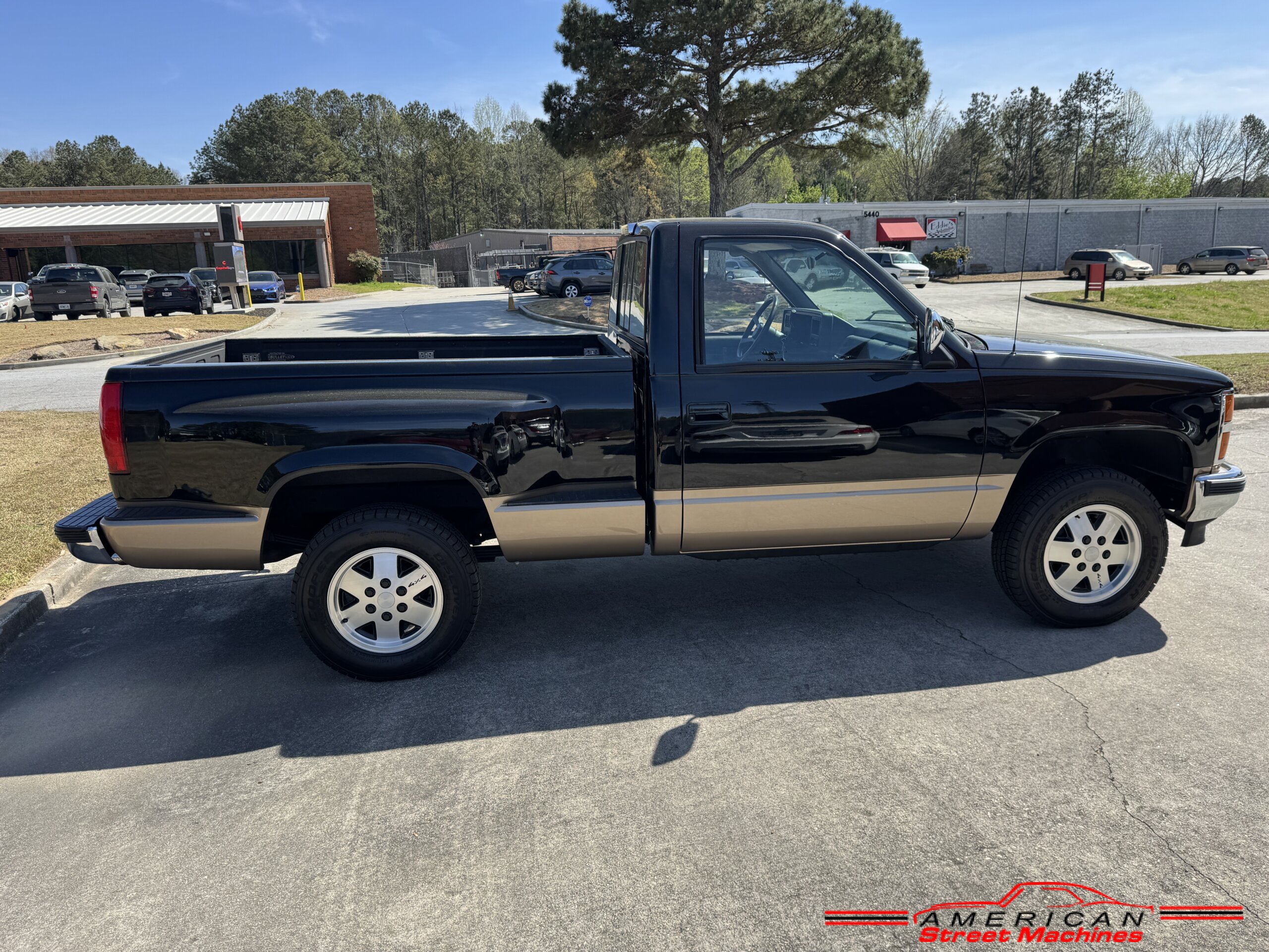 American Street Machines is proud to offer this very nice 1988 Chevy Silverado 4X4 for sale. This truck was sold new right here in GA and was very well taken car of before it was restored. Slick Black and Gold paint with original Grey clothe interior that is in great condition. 5.7 350 V8 engine with over drive automatic transmission and 4 wheel drive floor shift. Everything that needed to be restored on this truck has been done. Loaded up with options power steering, power brakes, air conditioning, power windows, power locks, sliding rear window, tilt wheel and 4 wheel drive. New factory correct wheels with new tires. The bed has new black rino lining and you can tell it was never dinged up. All chrome bumpers and mirrors are new. You would be hard pressed to find another 1988 Chevy Silverado 4×4 this nice with 124K original miles.