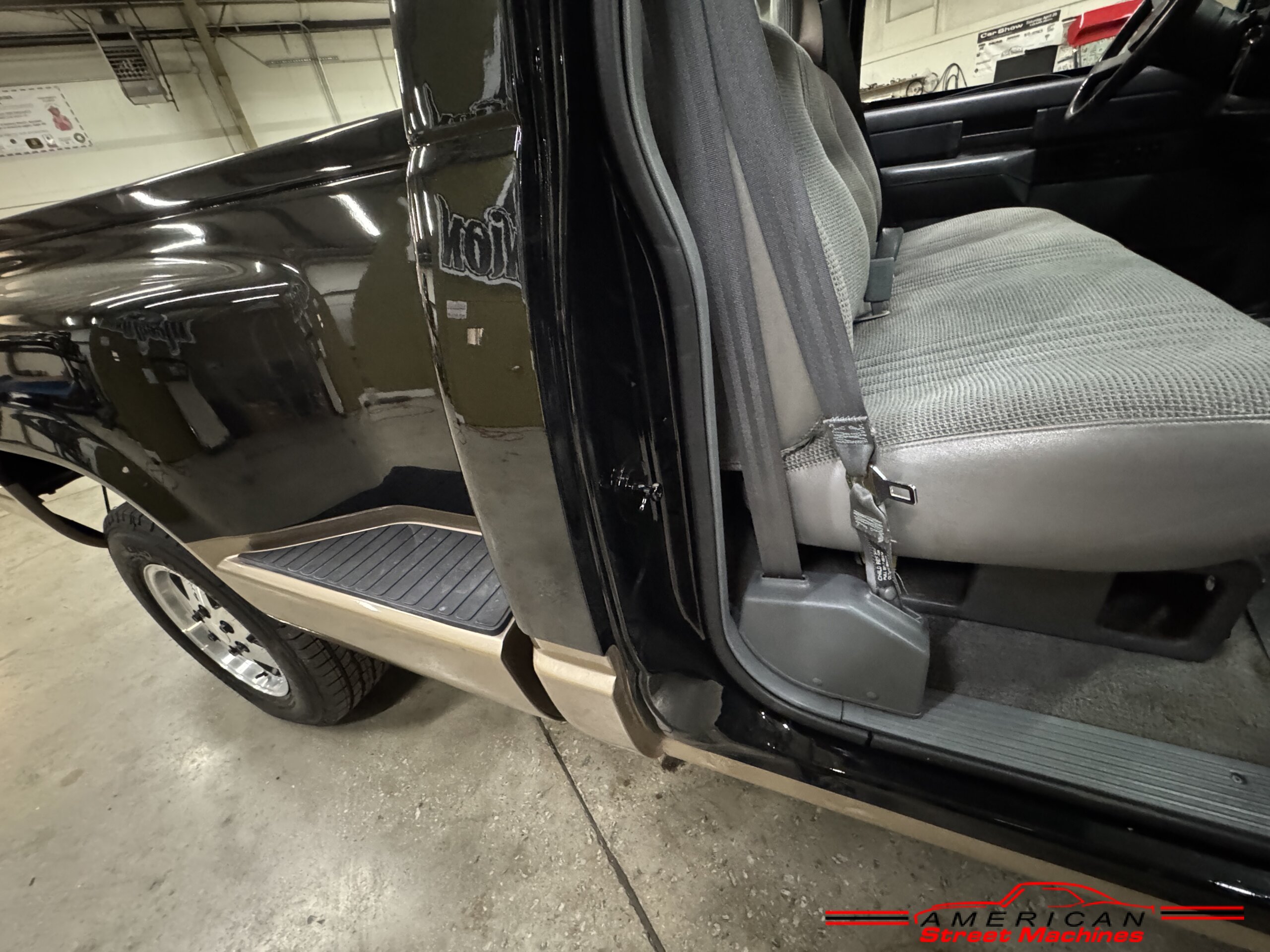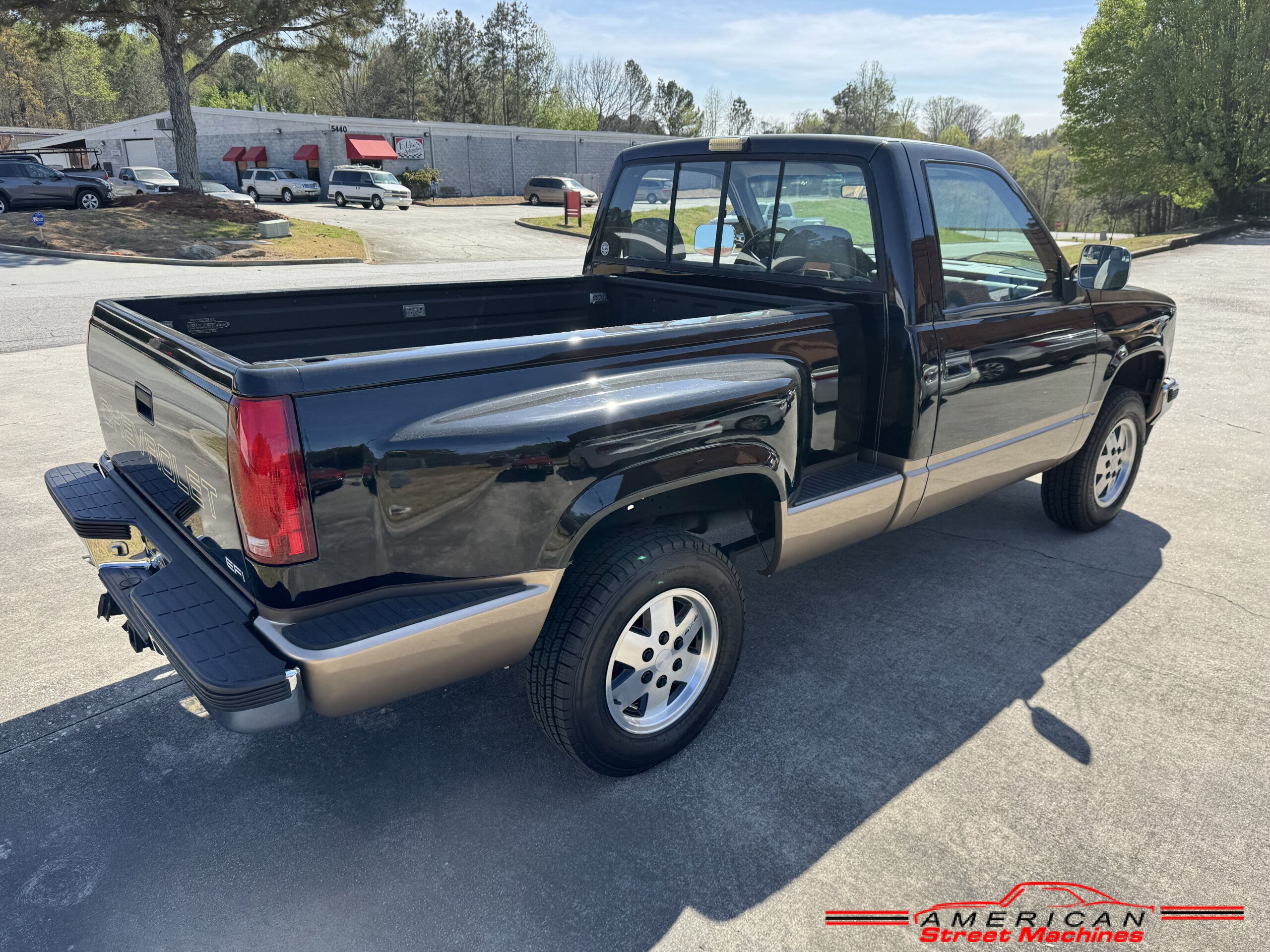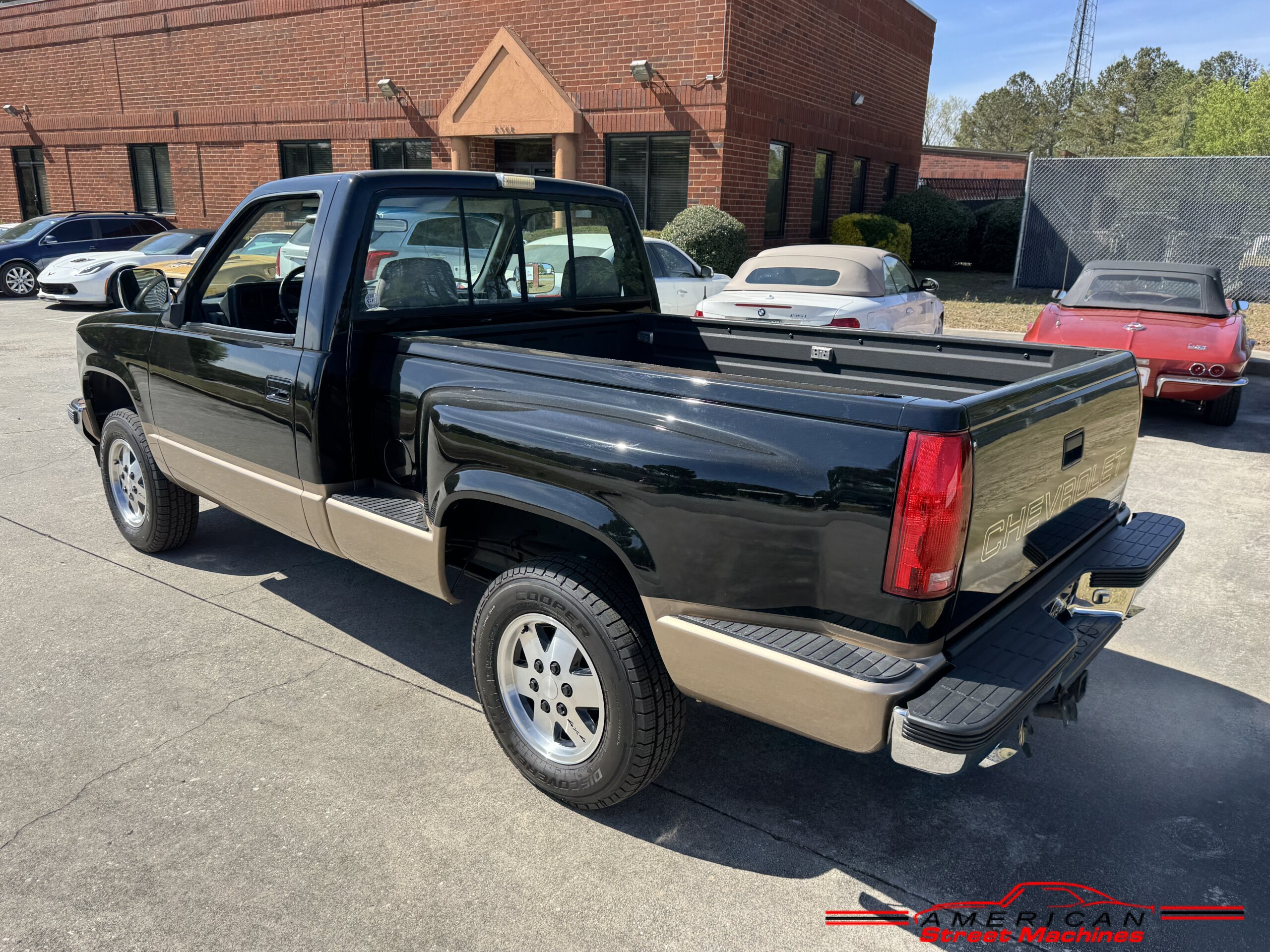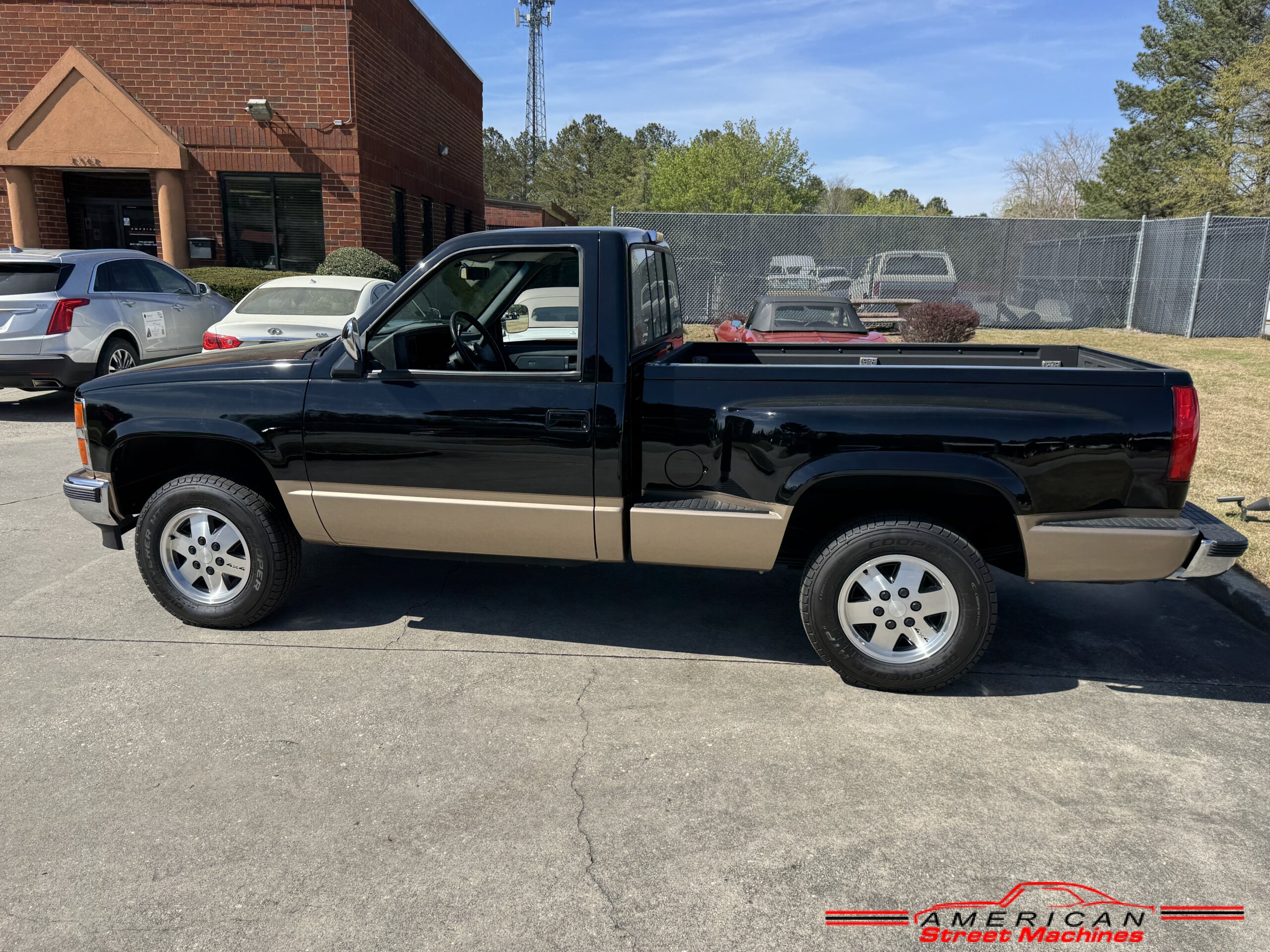 American Street Machines is proud to offer this very nice 1988 Chevy Silverado 4X4 for sale. This truck was sold new right here in GA and was very well taken car of before it was restored. Slick Black and Gold paint with original Grey clothe interior that is in great condition. 5.7 350 V8 engine with over drive automatic transmission and 4 wheel drive floor shift. Everything that needed to be restored on this truck has been done. Loaded up with options power steering, power brakes, air conditioning, power windows, power locks, sliding rear window, tilt wheel and 4 wheel drive. New factory correct wheels with new tires. The bed has new black rino lining and you can tell it was never dinged up. All chrome bumpers and mirrors are new. You would be hard pressed to find another 1988 Chevy Silverado 4×4 this nice with 124K original miles.